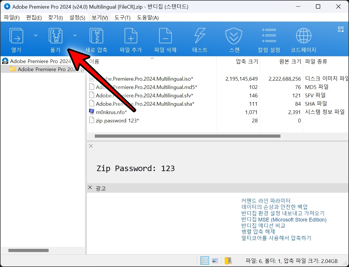 다운받은 파일의 압축을 해제합니다. 비밀번호는 123 입니다.