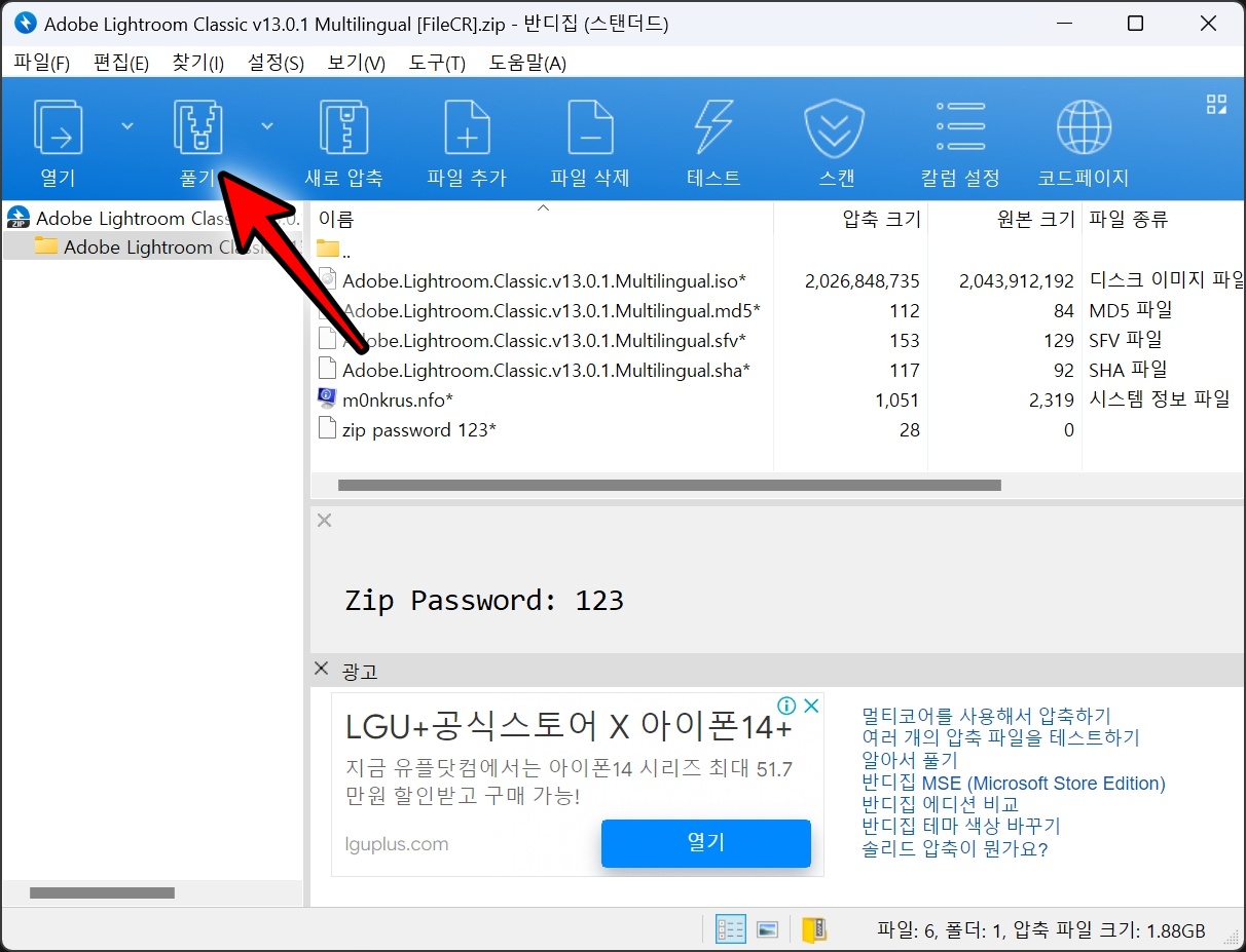 라이트룸클래식 2024 설치 파일의 압축을 해제합니다.