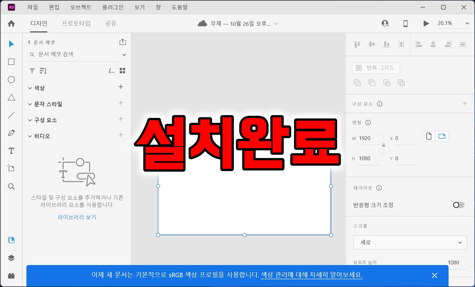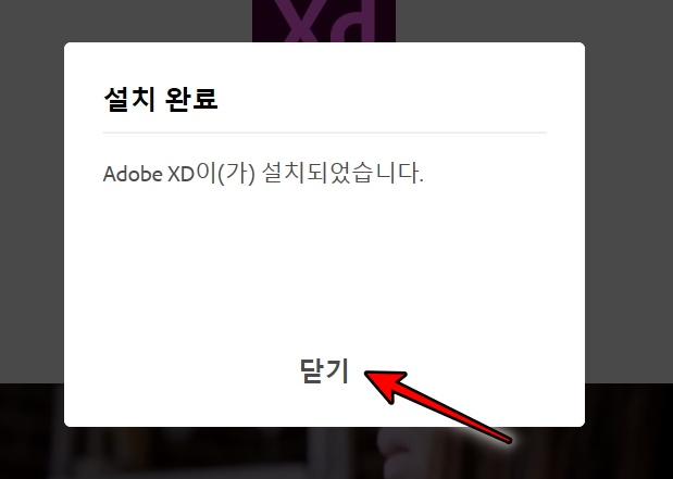 어도비 XD의 설치가 완료되었습니다.