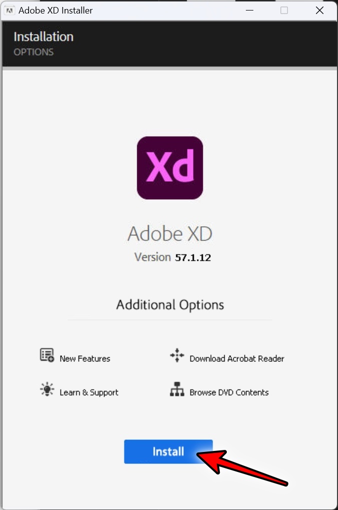 어도비 XD 설치 프로그램입니다. Install을 클릭하면 자동으로 설치가 시작됩니다.