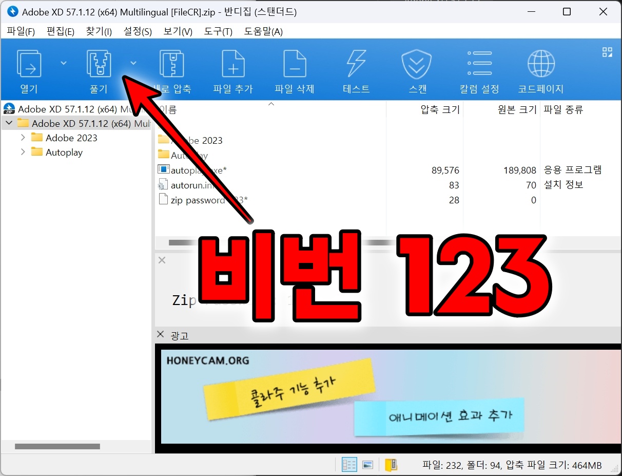 파일을 다운받은 후 압축을 해제합니다. 비밀번호는 123 입니다.