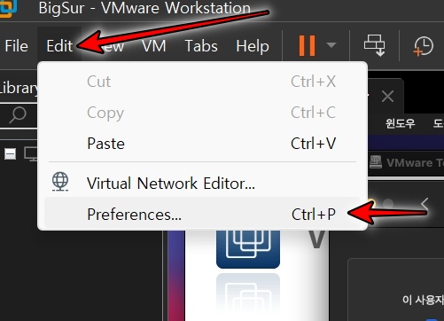 워크스테이션에서 Edit ->Preferences를 클릭합니다.