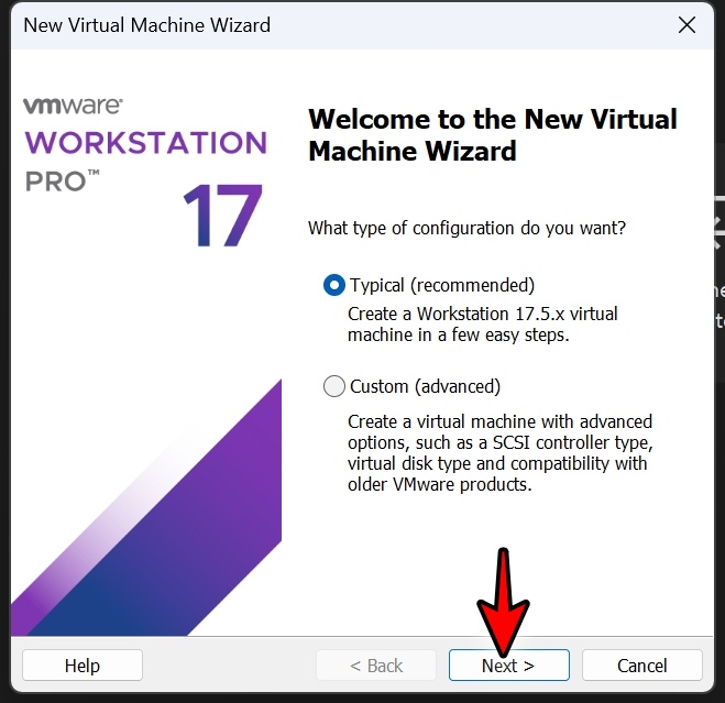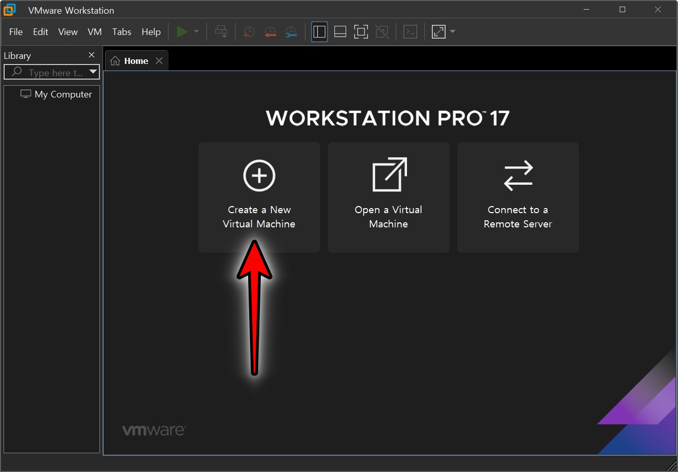 워크스테이션을 실행하고 Create a New Virtual Machine을 실행합니다.