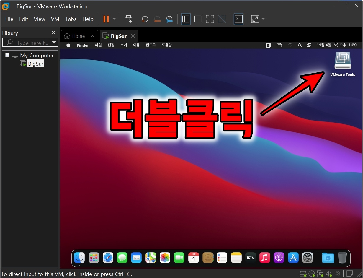 로그인을 하면 바탕화면에 VMware Tools가 있습니다. 더블클릭 합니다.