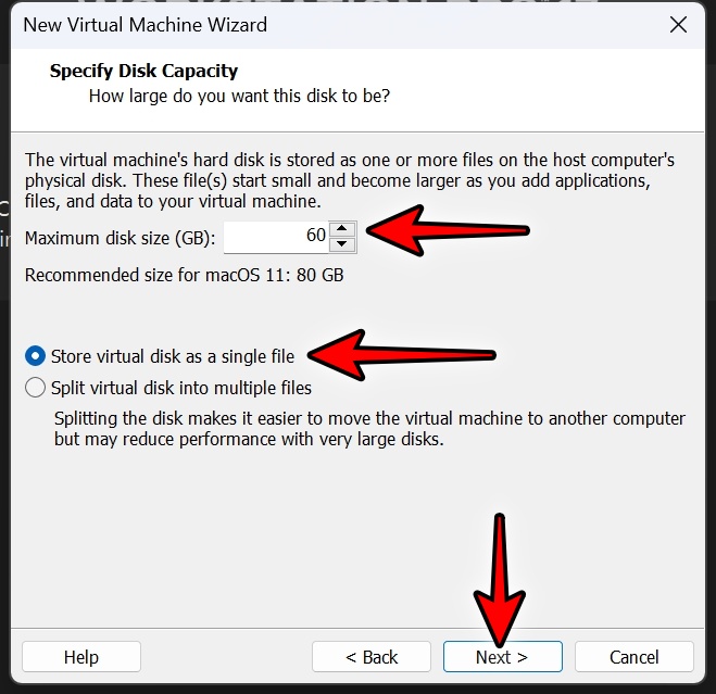 Store virtual disk as a single file을 체크하고 Next를 클릭합니다.