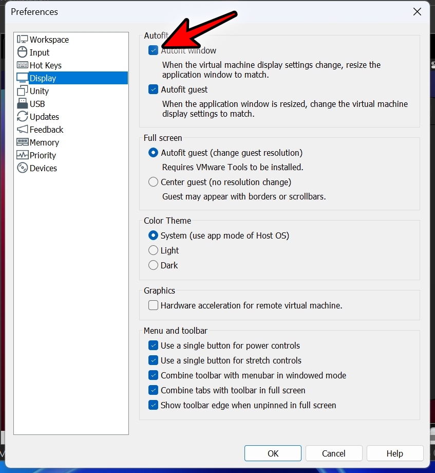 Display 탭에서 Autofit Window를 체크합니다. 자동으로 창 조절하는 옵션입니다.