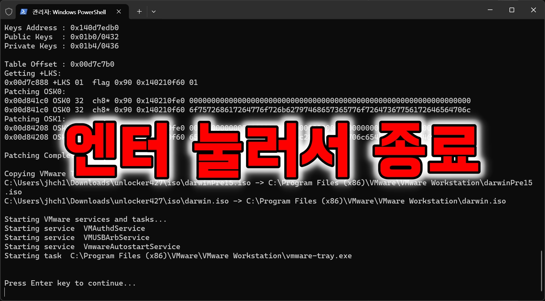 설치가 완료되면 엔터를 눌러서 종료합니다. unlocker 설치가 완료되었습니다.