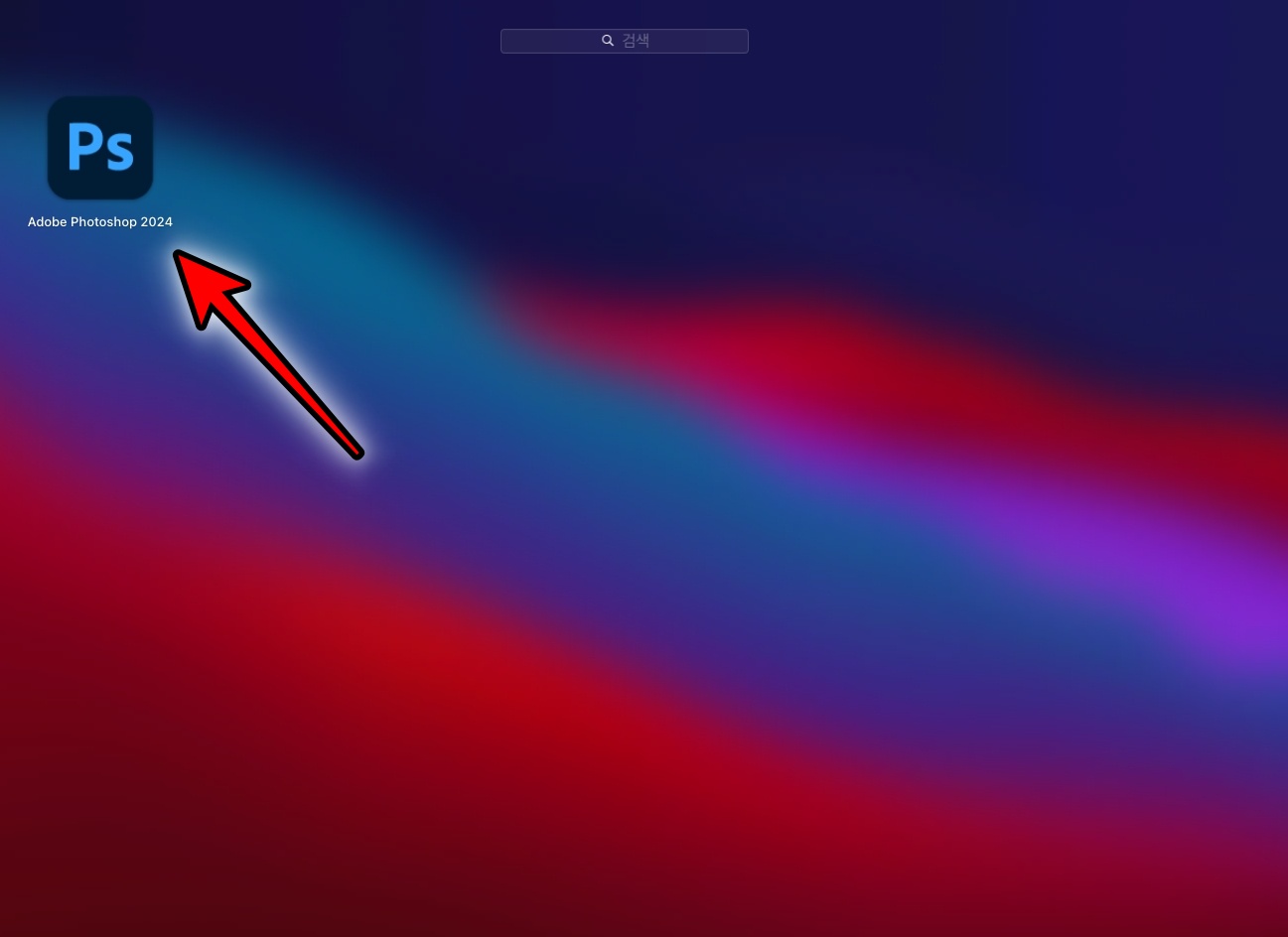 launchpad를 열어 설치한 adobe Photoshop 2024 를 실행합니다.
