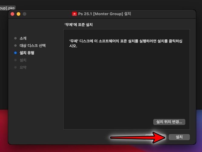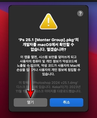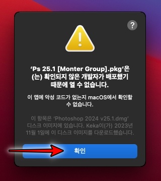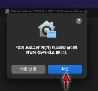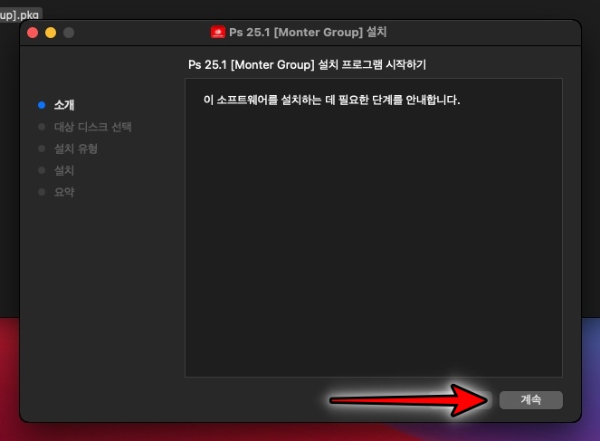 포토샵 2024 맥버전 설치 프로그램입니다. 계속 을 클릭합니다.