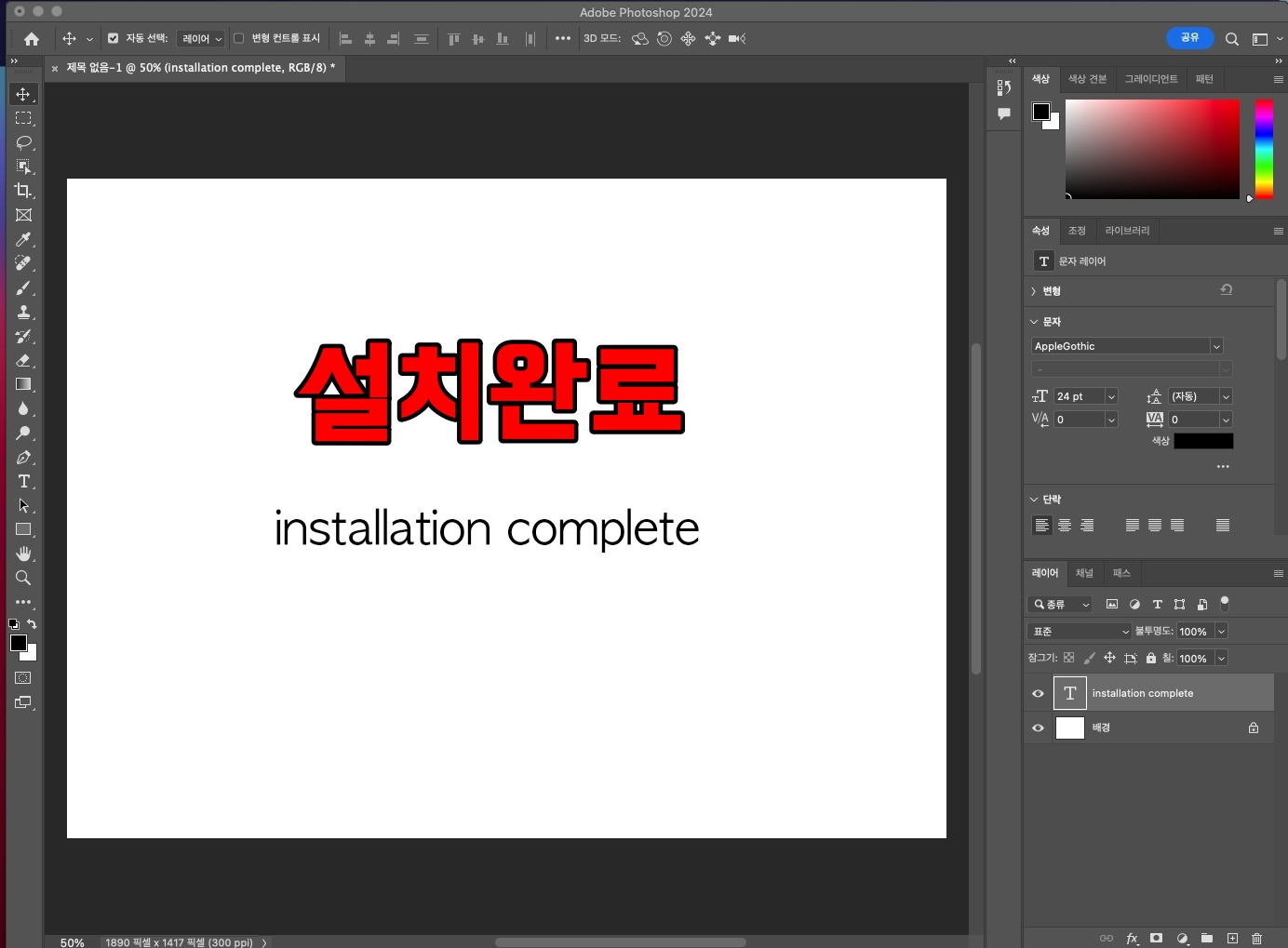 포토샵 2024 맥버전 설치가 완료되었습니다.