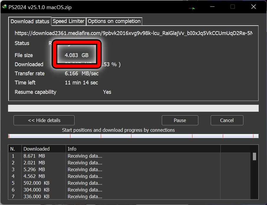 포토샵 2024 맥버전 설치파일 크기는 4.083Gb입니다. 다운로드가 완료되면 설치를 시작합니다.