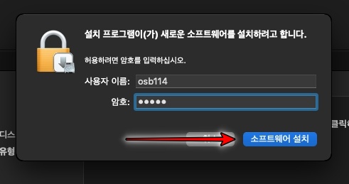 사용자이름과 암호를 입력하고 소프트웨어 설치 를 클릭합니다.
