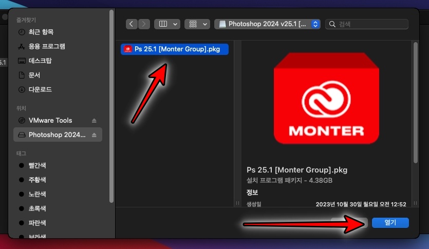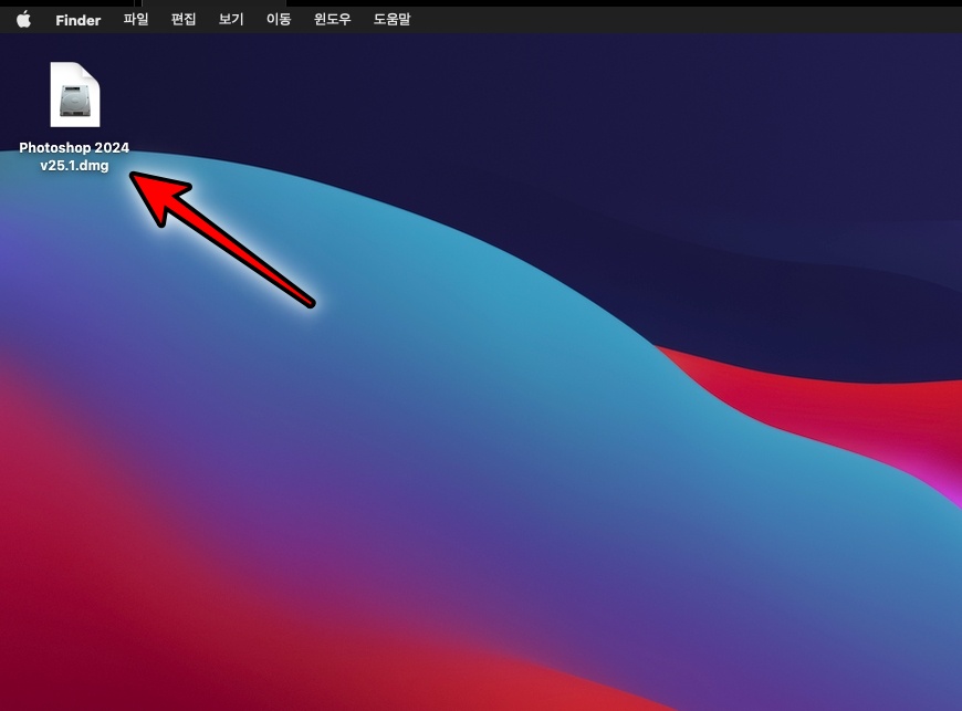 압축파일을 풀고, Photoshop 2024 v25.1.dmg를 실행합니다.