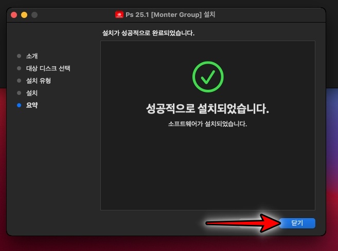 포토샵 2024 설치가 끝났습니다. 닫기 를 클릭해서 설치 프로그램을 종료합니다.