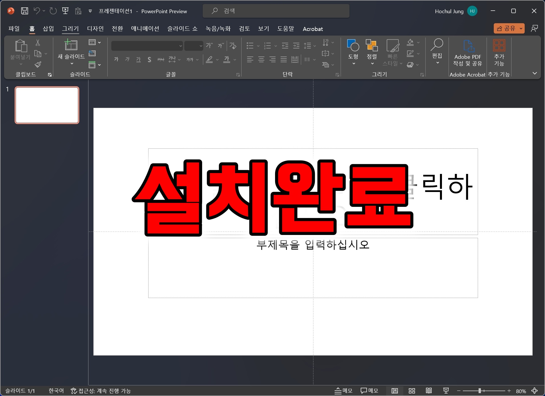 엑셀에서 한글패치를 하면 2024 워드와 2024 파워포인트도 자동으로 한글 버전으로 바뀐 것을 확인할 수 있습니다.