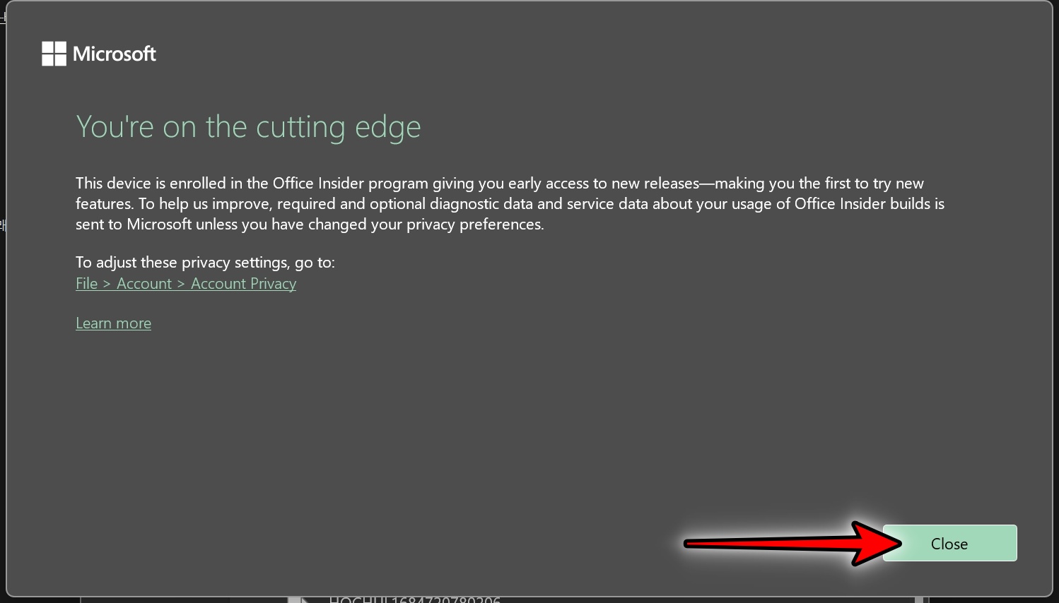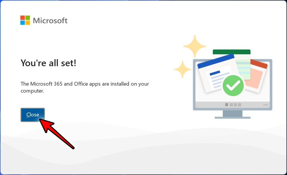 Close를 클릭합니다. 여기까지 하면 오피스 2024 인증은 완료됩니다.