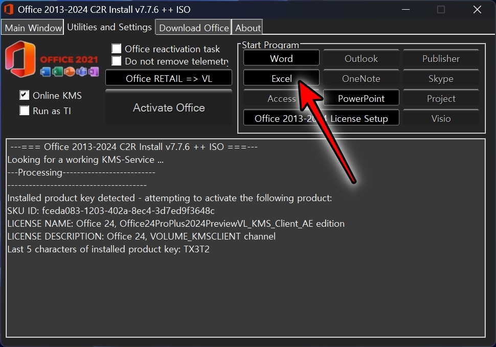 자동으로 인증을 진행합니다. 오피스 2024 크랙 작업이 끝나면, Start Program 에 있는 프로그램 중 하나를 클릭합니다.