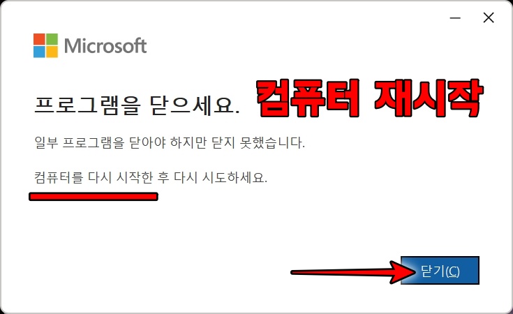 설치가 끝나면 닫기 를 클릭하고 컴퓨터를 재시작합니다.