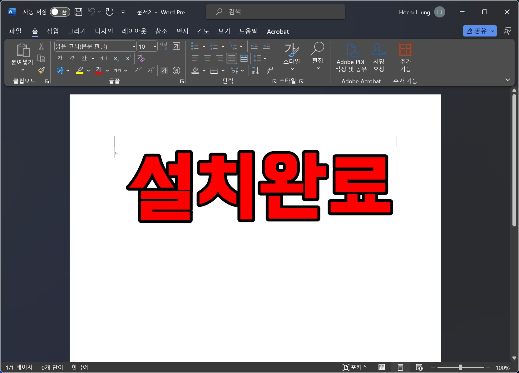 오피스 2024 한글패치가 완료되었습니다.