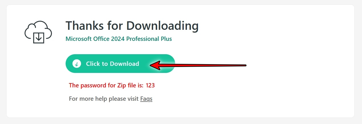 5초 기다린 후, Click to Download를 클릭하면 오피스 2024 다운로드가 시작됩니다.