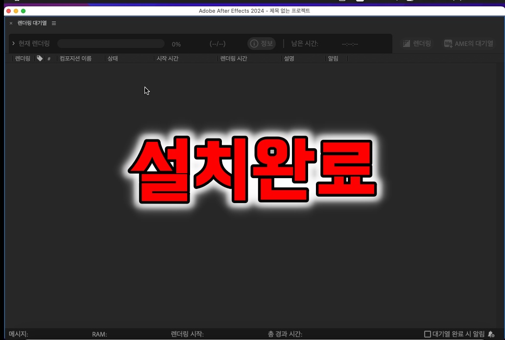 맥 버전 애프터이펙트 2024가 설치되었습니다.