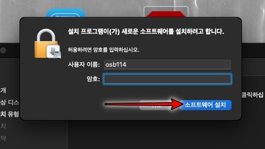 사용자 이름과 암호를 입력한 후 소프트웨어 설치 를 클릭합니다.