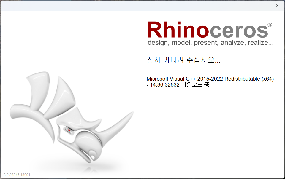 파일 다운로드가 완료되면 라이노 8 설치를 시작합니다.