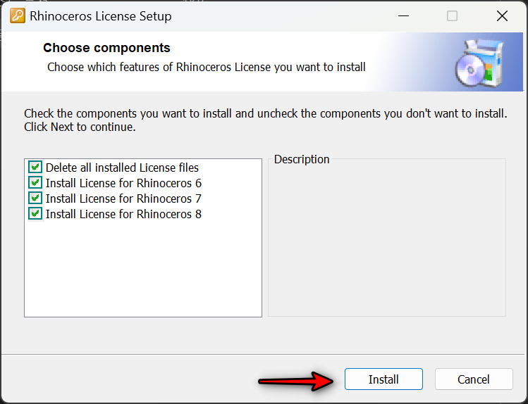 라이노 인증 프로그램입니다. Install을 클릭해서 라이노8 크랙을 설치합니다.