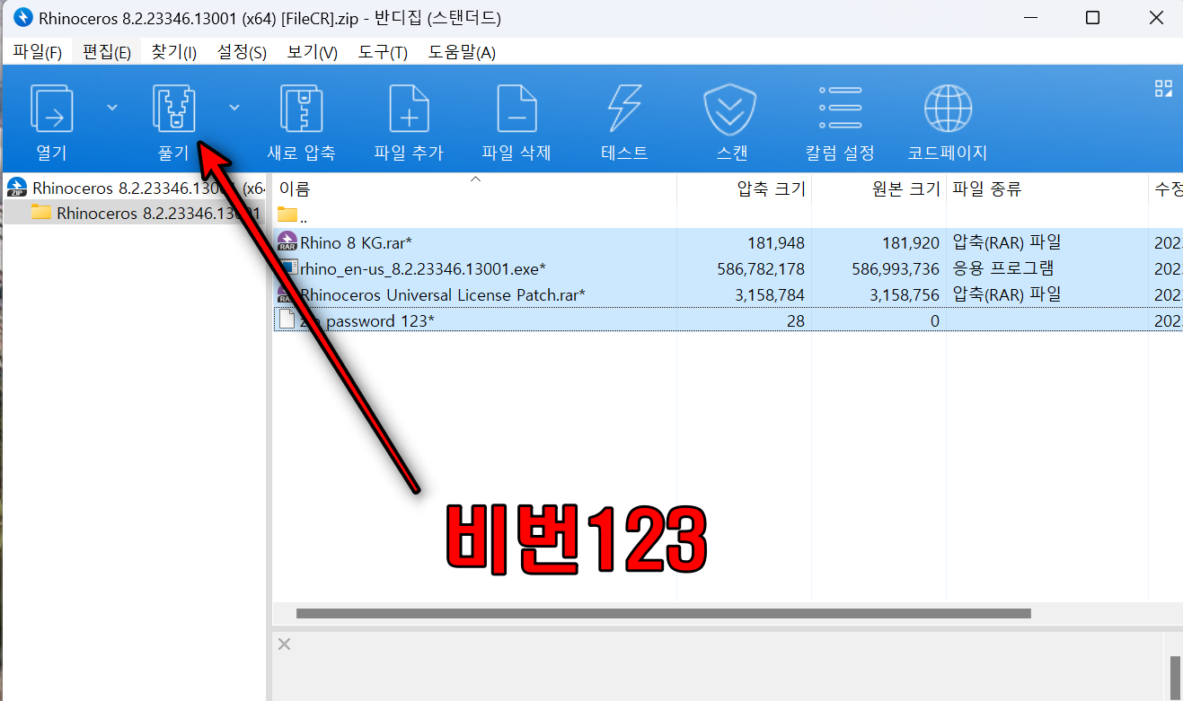 압축 파일을 열고 압축을 풀어줍니다. 비밀번호는 123입니다. 설치 전에 인터넷은 해제합니다.