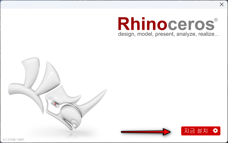 라이노 8 설치 프로그램입니다. 지금 설치 를 클릭해서 라이노 8 설치를 시작합니다.
