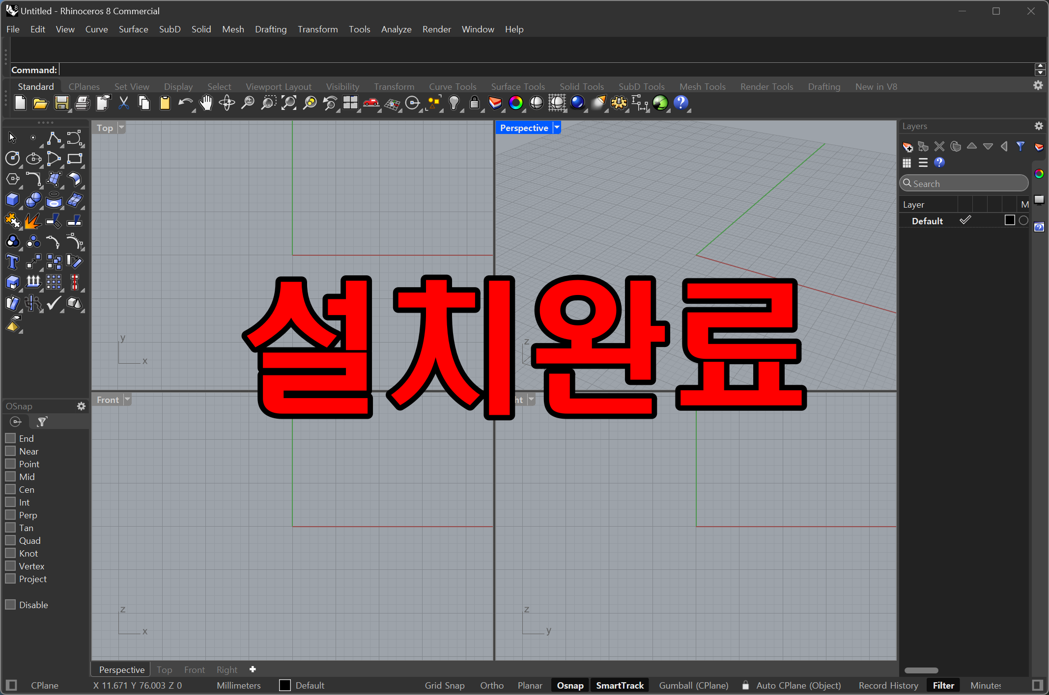 라이노8 의 설치가 완료되었습니다.
