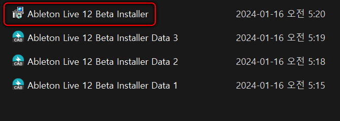 압축을 풀고 폴더 내에 있는 Ableton Live 12 Beta Installer 파일을 실행합니다.