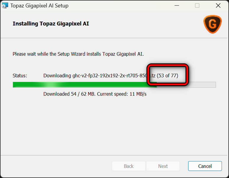 다운받은 파일 압축을 해제한 후, 폴더 내에 있는 TopazGigapixelAI-7.0.2 파일을 실행해서 설치를 시작합니다.