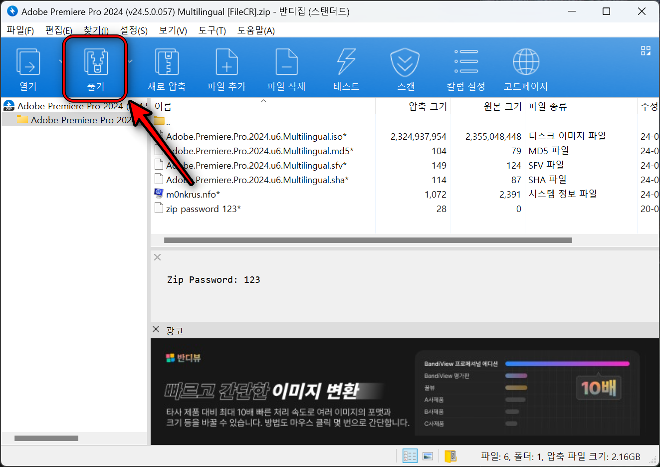 다운로드 받은 파일의 압축을 풉니다. 압축 비밀번호는 123 입니다.