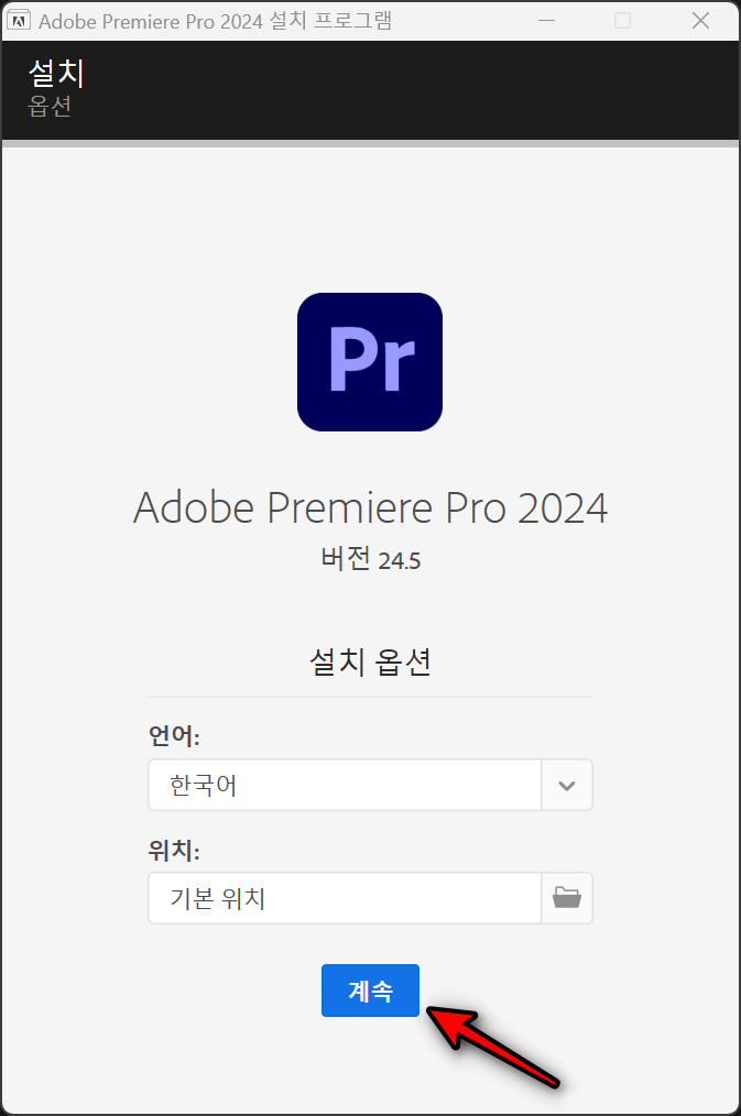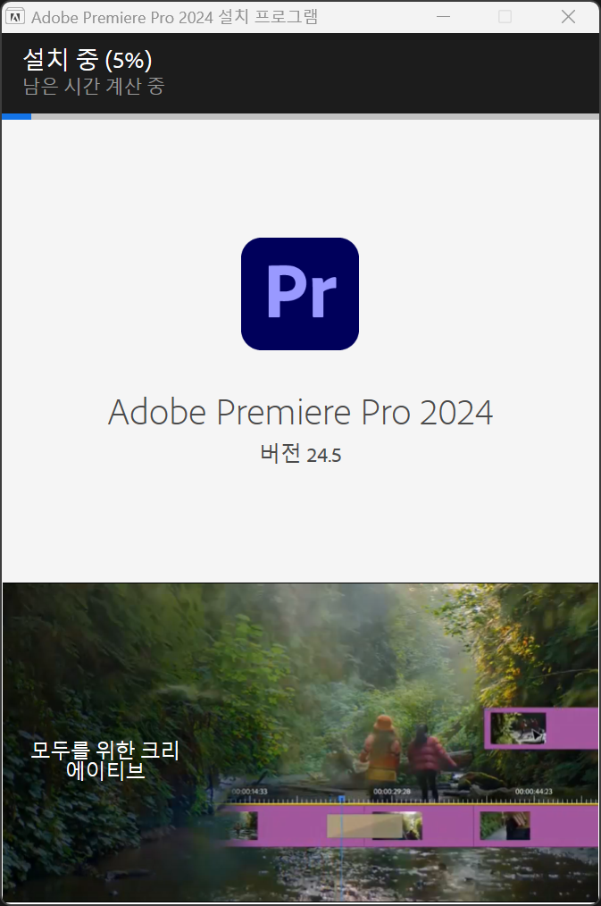 프리미어 프로 2024의 설치가 끝났습니다.