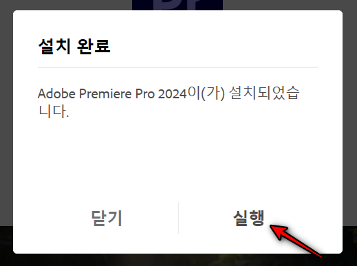 설치가 끝나면 실행 을 클릭해서 프리미어 프로 2024를 실행합니다.