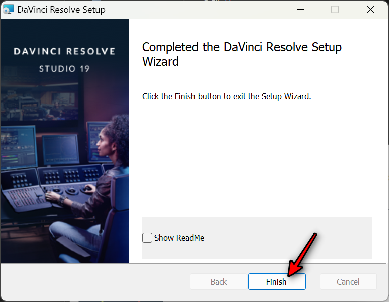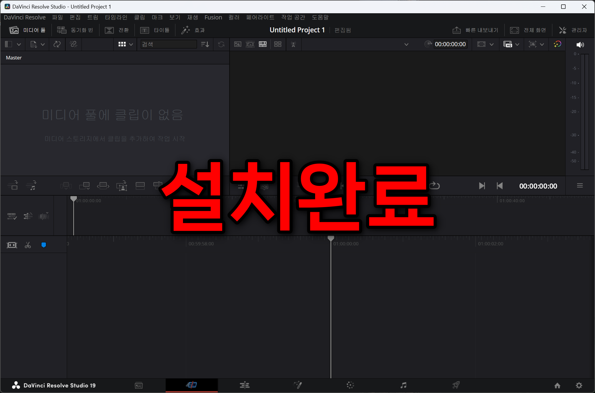 다빈치 리졸브 스튜디오 19의 설치가 완료되었습니다.