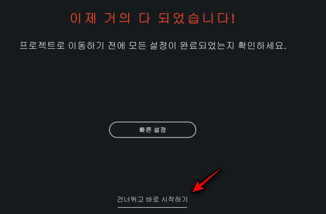 건너뛰고 바로 시작하기 를 클릭합니다.