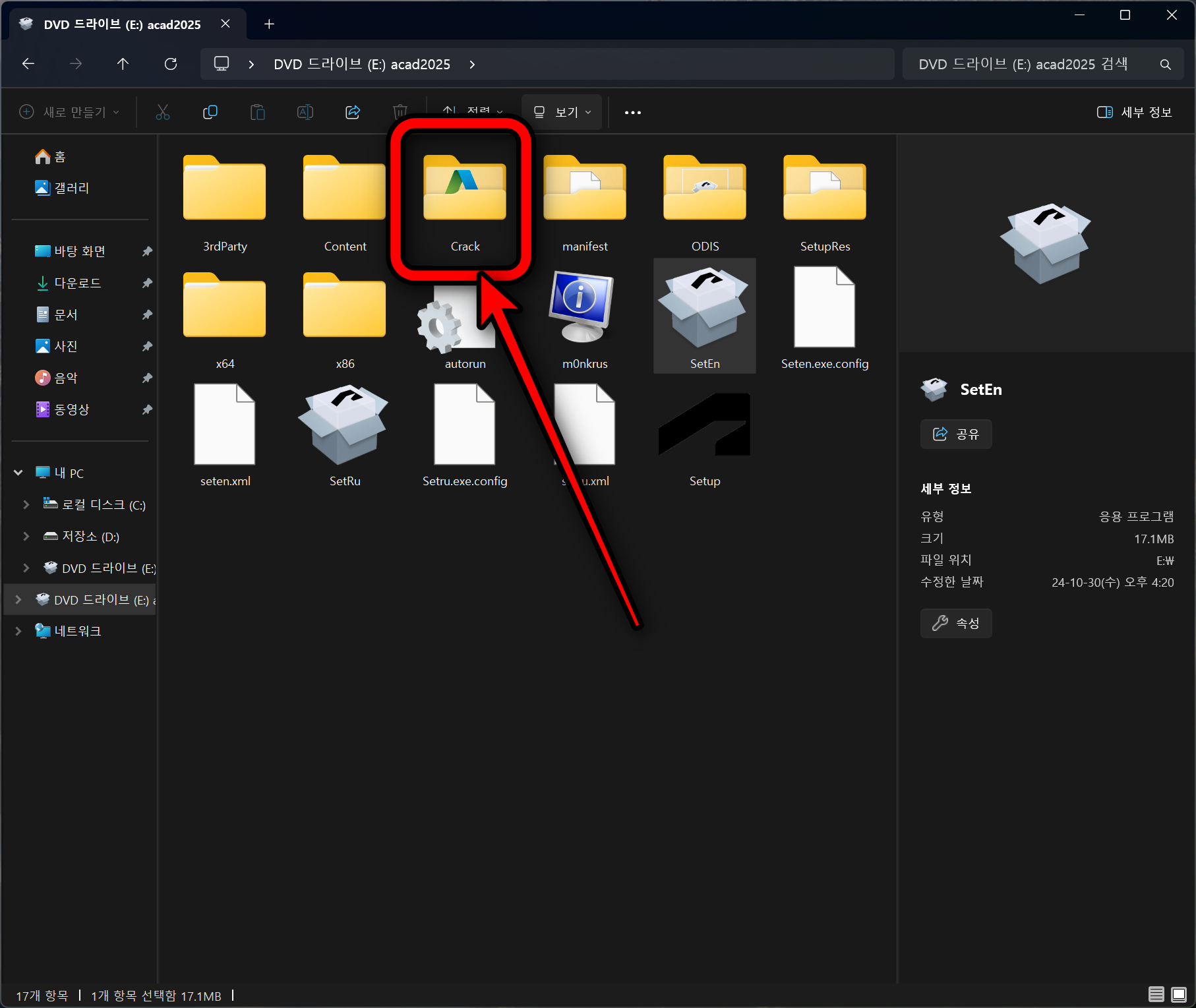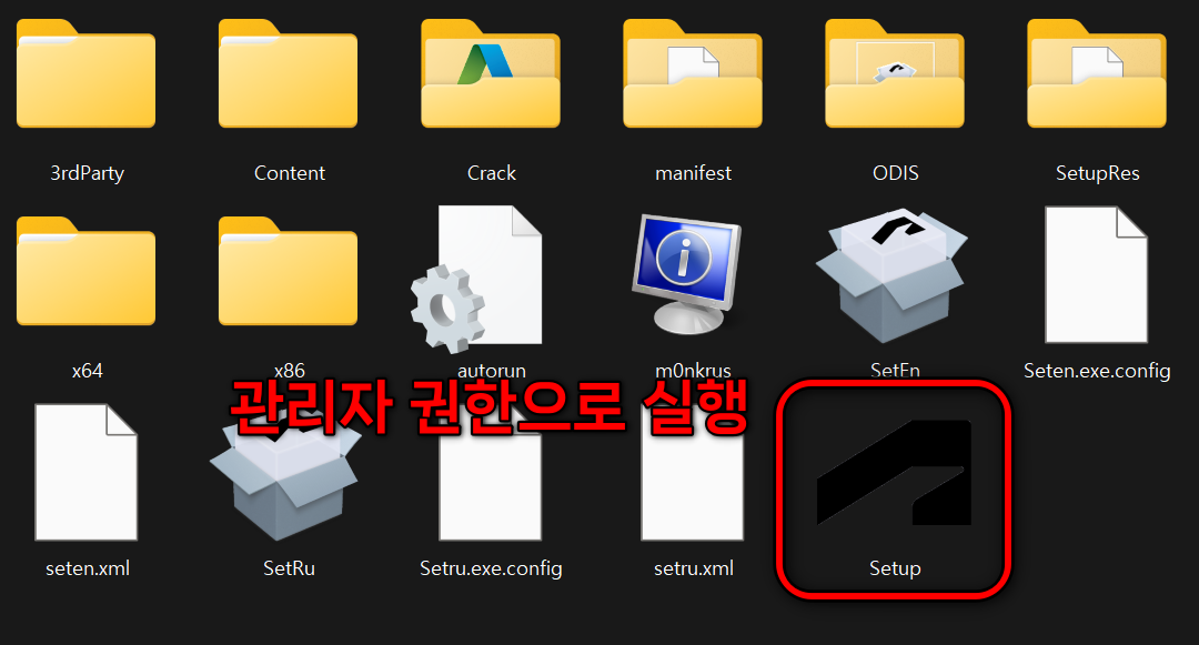 드라이브 안에 있는 Setup 파일을 관리자 권한으로 실행합니다.