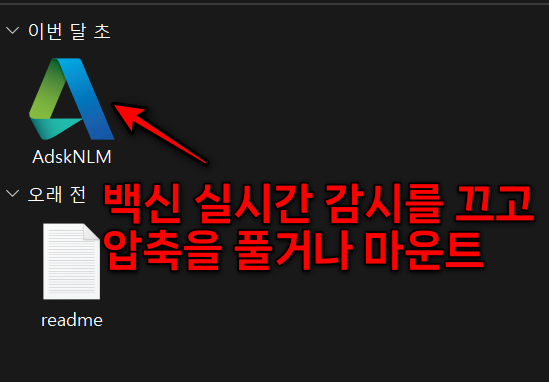 오토캐드 크랙을 설치합니다. 설치폴더 내에 있는 Crack 폴더 안에 있는 AdskNLM 파일을 실행합니다.