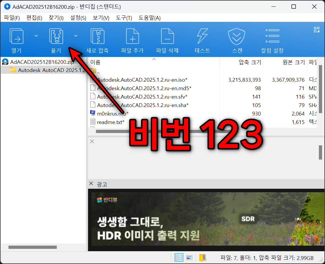압축을 풉니다. 비밀번호는 123 입니다.