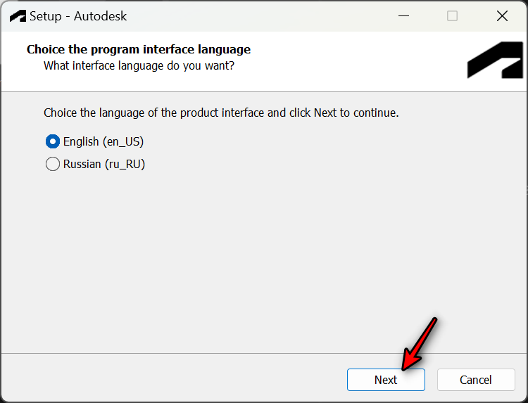 오토캐드 설치 프로그램입니다. 언어를 선택하고 Next를 클릭합니다.