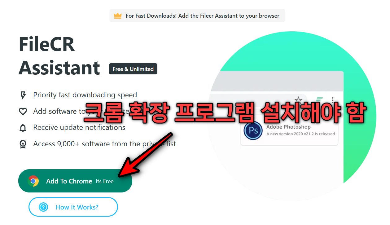 링크 클릭하고 들어가면 우측에 Fast Download라고 써있게 있습니다. 포토샵 같은 인기 프로그램은 일반 다운로드가 안되고 저 다운로드만 지원하더라구요. 클릭합니다.