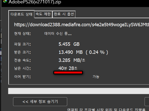다운받는데, 속도가 너무 느립니다. 외국 서버라서 다운이 오래 걸리는데, 이럴 경우에는 IDM을 통해서 다운받는게 좋습니다.