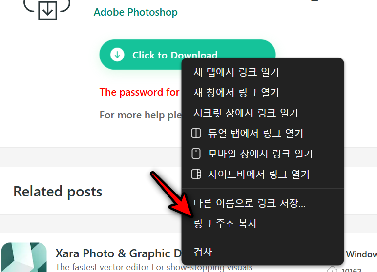IDM을 이용해서 다운받기 위해 우클릭하고 링크주소를 복사합니다.
