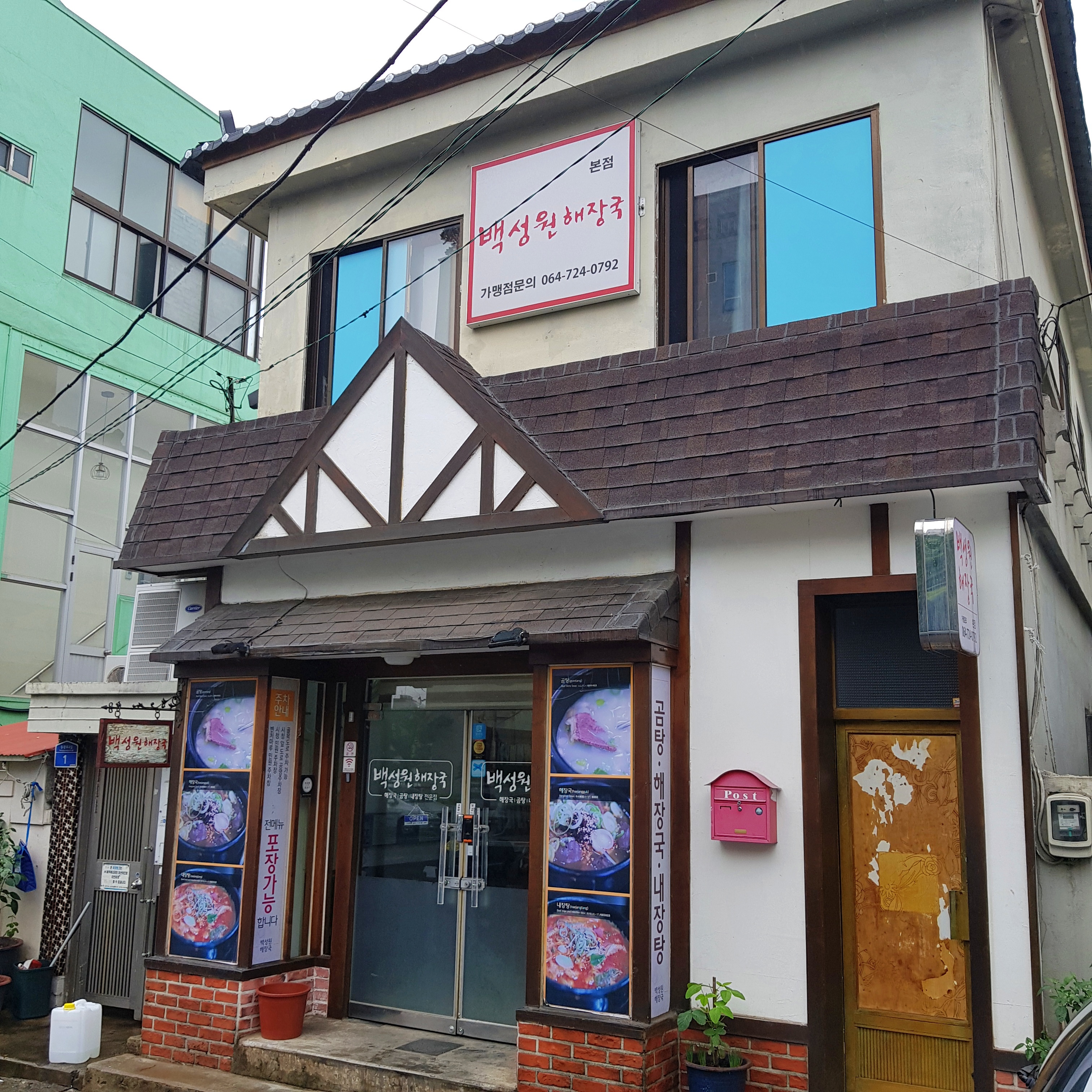 목적지인 제주박물관에 가기 전, 한 끼를 때우기 위해 근처 해장국집으로 갔습니다. 제주시정 근처에 있는 백성원 해장국집이었습니다.