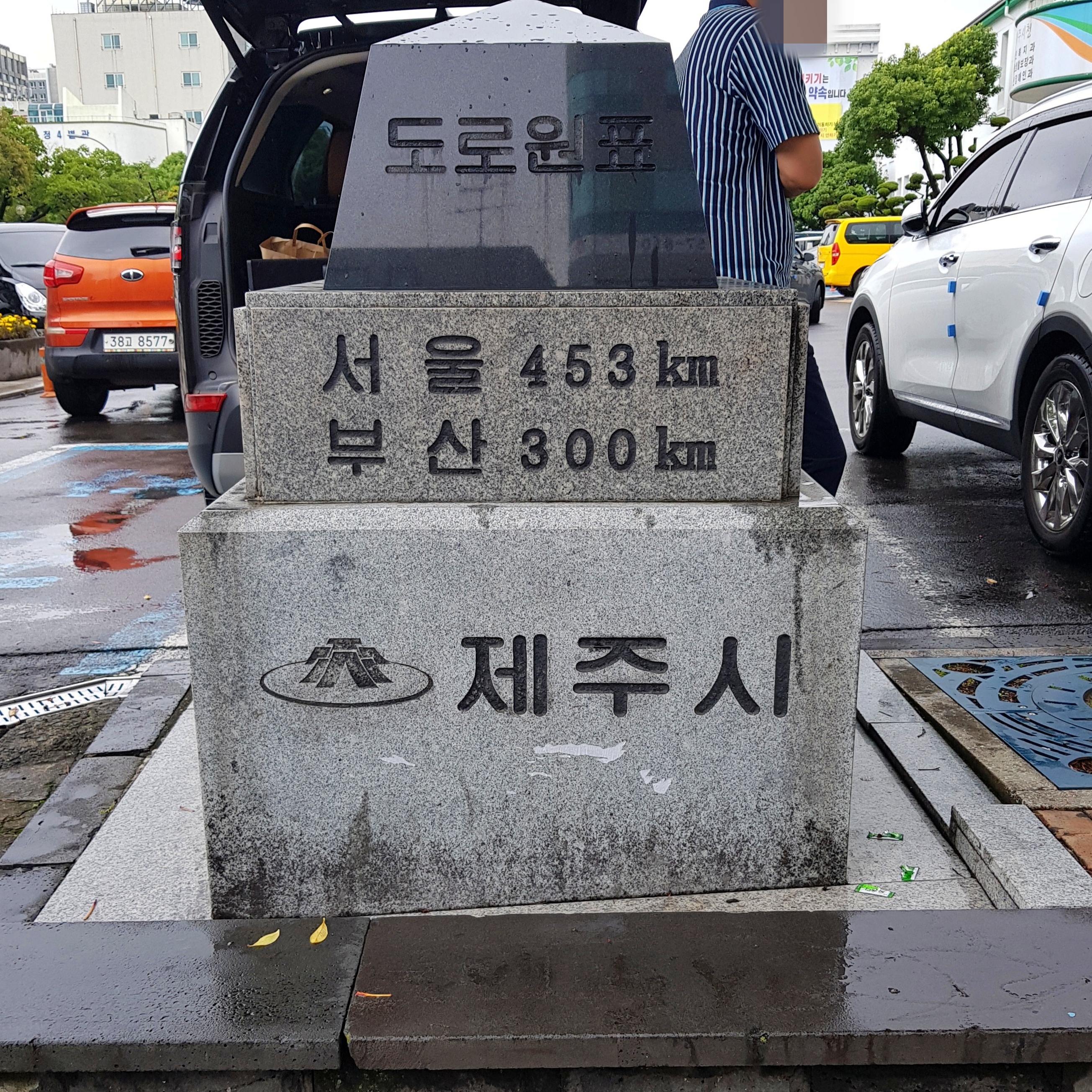 제주시에 도착했습니다. 도로원표가 보였습니다. 서울까지 453km 이군요. 어제 걸었던 올레길 7코스를 23번 걸으면 도착하겠네요.
