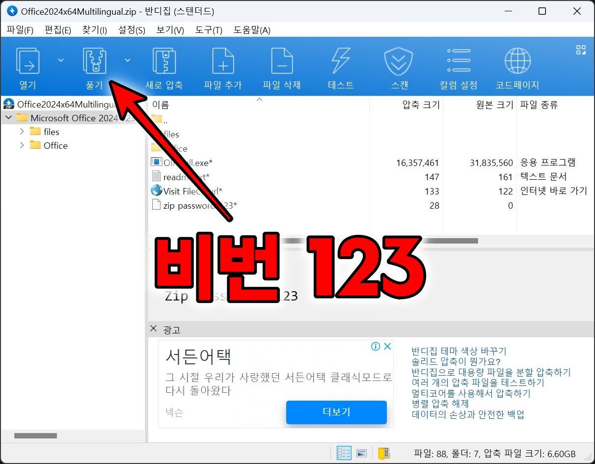 다운로드 받은 파일의 압축을 풉니다. 비밀번호는 123 입니다.