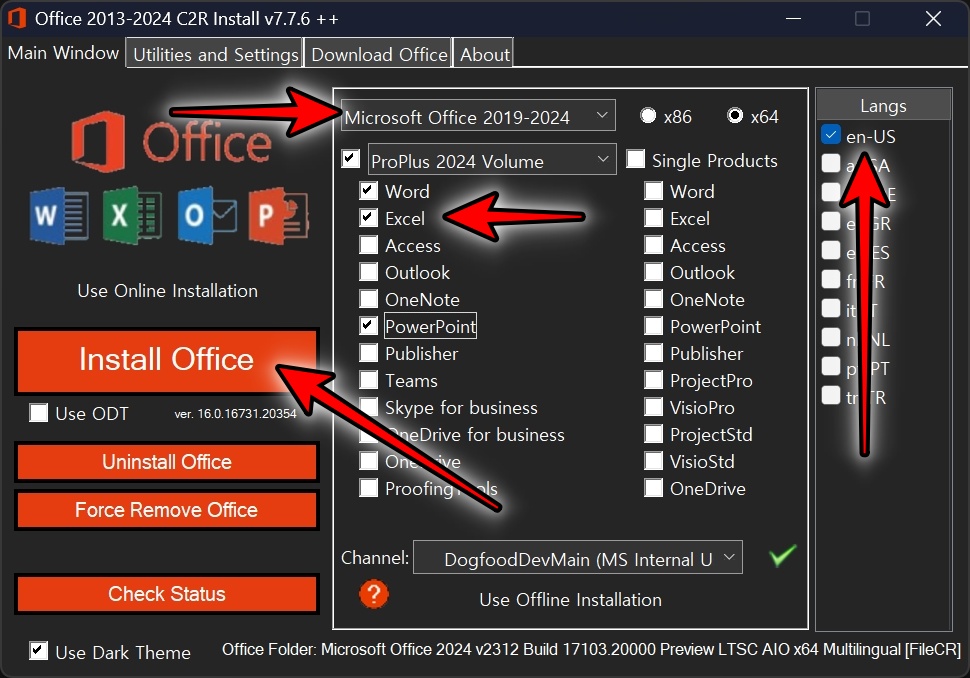 ProPlus 2024 Volume, en-US, 원하는 오피스 프로그램을 선택 후 Install Office를 클릭합니다.