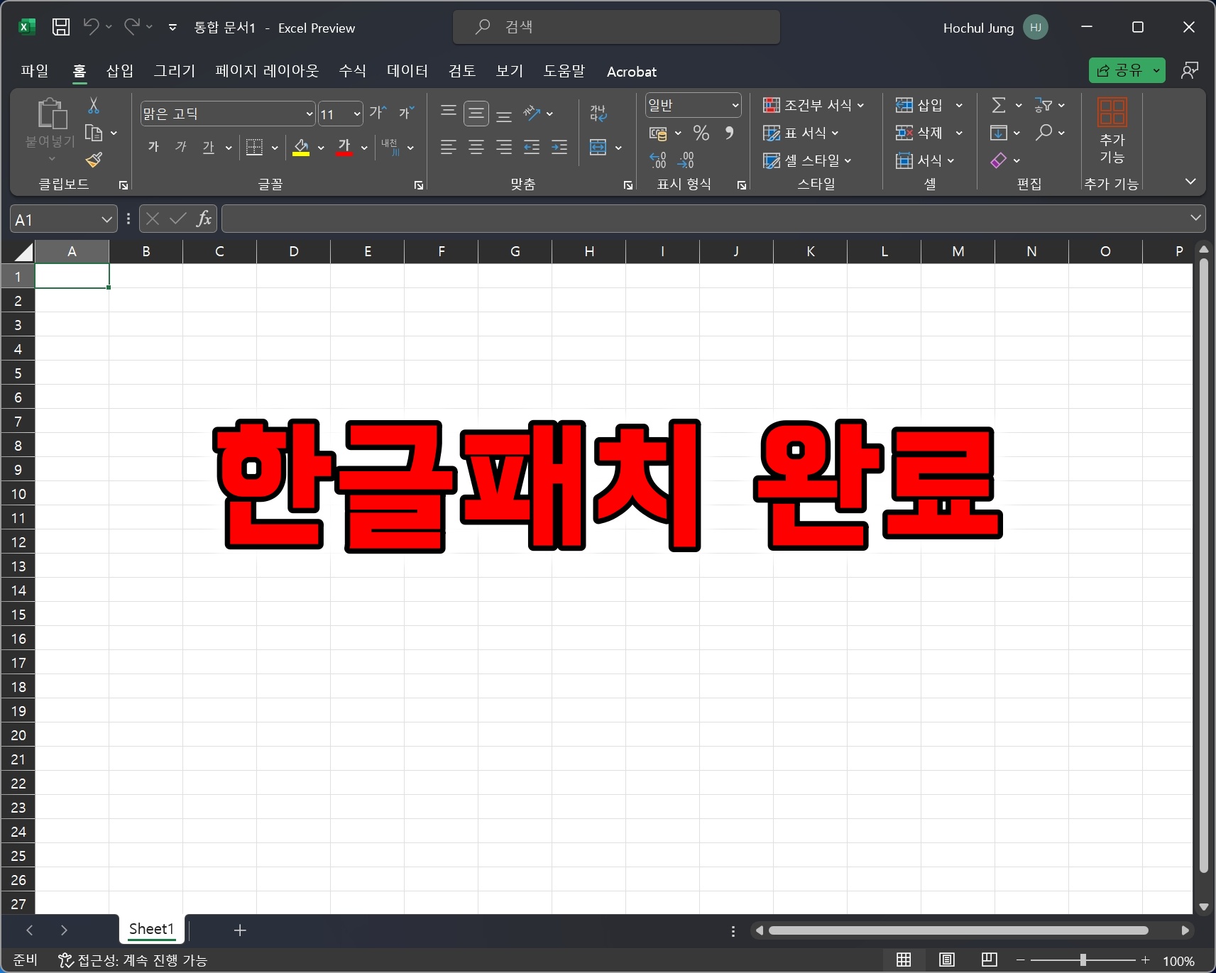 오피스 2024 한글패치가 완료되었습니다.